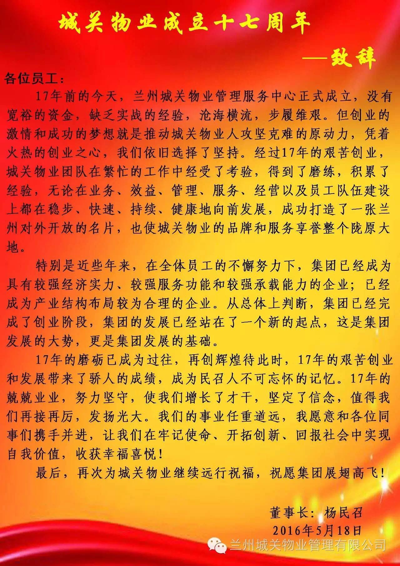 熱烈慶祝城關(guān)物業(yè)管理有限公司成立17周年