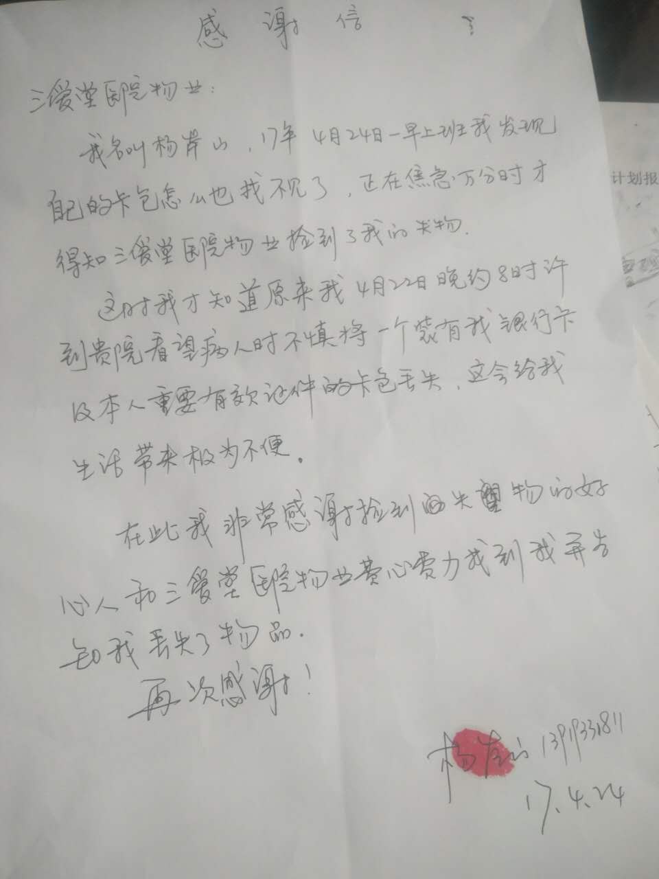 8103項目部保潔拾金不昧獲失主點贊