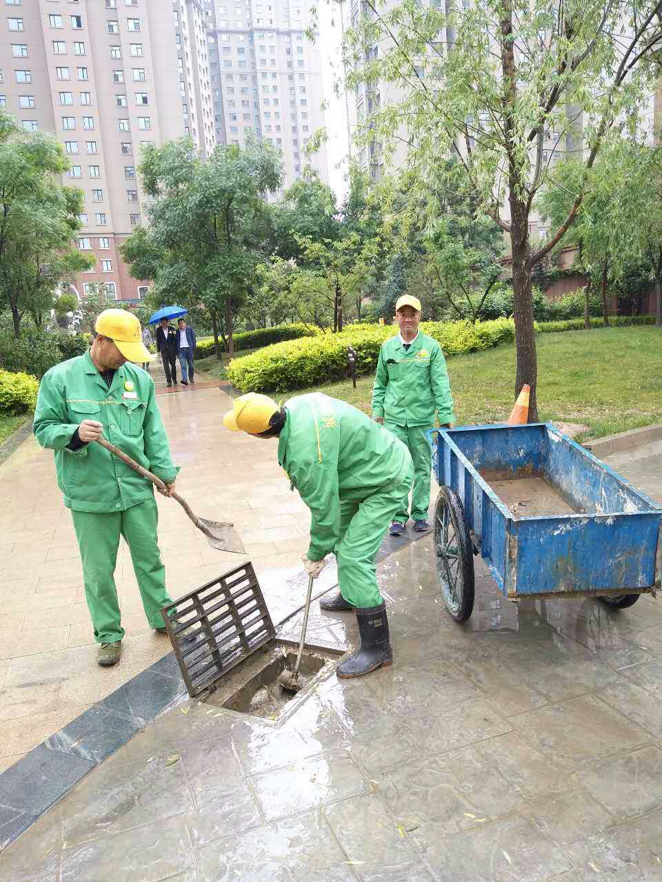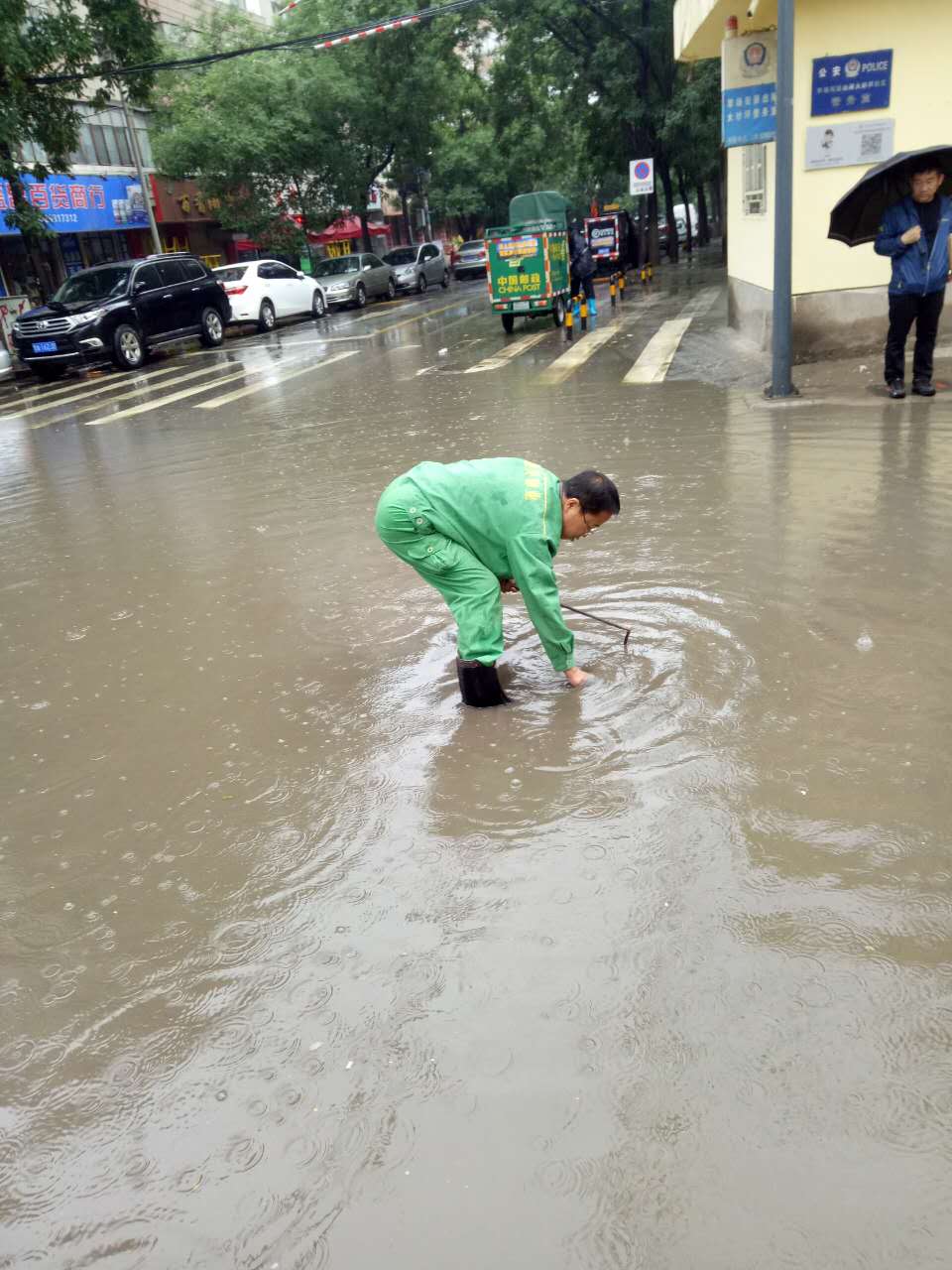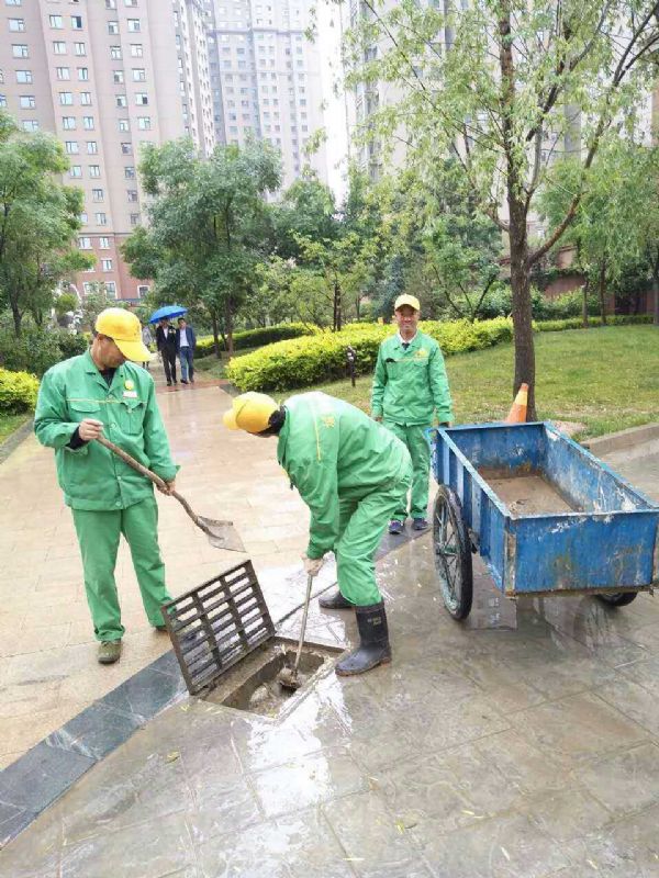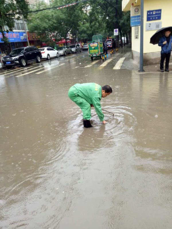 暴雨來襲,城關(guān)物業(yè)每位員工都堅守在抗擊暴雨的第一線。保安們在風雨中麻利的扛起一袋袋防汛沙袋壘在車庫、地下室等低洼地區(qū)的入口,以防雨水倒灌。保潔員們用清潔工具不停地將室內(nèi)積水往外排,為了保證順利排水,在暴雨中查看下水道口,不顧水浸濕褲管和衣袖,直接將手伸進下水道口,把灌入的雜物清出。為了更迅速的排水,他們沒有打傘,兩手握著棍子奮力的疏通下水道。技術(shù)維修部的同事們時刻查看設(shè)備是否進水,是否正常運行。雖然是在室內(nèi),可是他們也已經(jīng)渾身大汗,即使是這樣,也一刻不放松。據(jù)第一事業(yè)部王總介紹,此次暴雨雖說突然,但是對于各項目來說卻一點也不突然,因為自4月份開始,各項目部就已經(jīng)成立了應急小組,儲備了防汛物資,如沙袋、手電等,再加上日常的演練,每個人都已經(jīng)對自己的工作輕車熟路了,在這這樣的前提下安排工作省時又高效。因此,此次的防洪抗暴工作才能在最短的時間內(nèi)達到最好的效果。