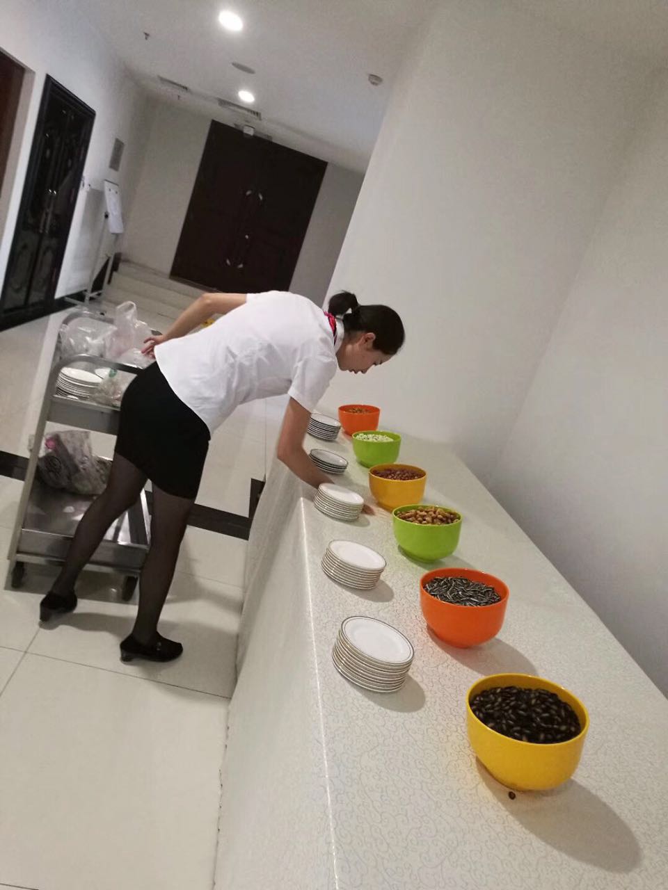 為了保障本次會議的順利召開,省高法項目部在接到通知后,全體員工放棄了周末休息,全員到崗為本次會議提前做準(zhǔn)備。從綠化、外圍、水電、到樓內(nèi)各區(qū)間衛(wèi)生均認(rèn)真排查,并于8月22日晚結(jié)束全部準(zhǔn)備工作。由于本次會議規(guī)格高、要求高,省高法項目部除了要承擔(dān)會議的基本布置接待外,還需在會議休息間歇準(zhǔn)備茶點。為了給外地參會領(lǐng)導(dǎo)留下美好的印象,省高法項目部專門選擇了具有蘭州特色的白粉桃、巴梨、黃河密等水果,配以蘭州特色糕點和干果作為茶歇區(qū)小點,品種多樣的小食水果讓前來參會的領(lǐng)導(dǎo)紛紛贊不絕口。