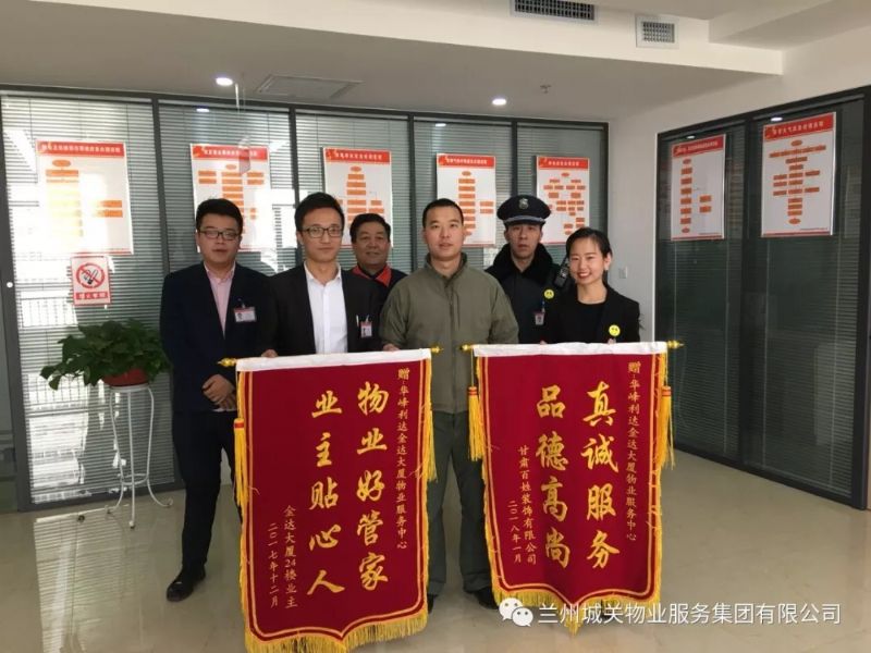 近日,金達(dá)商務(wù)大廈24樓業(yè)主將題有“真誠服務(wù),品德高尚”、“物業(yè)好管家,業(yè)主貼心人”的兩面錦旗送至華峰利達(dá)物業(yè)公司,并對(duì)工作人員心系業(yè)主、認(rèn)真負(fù)責(zé)的工作態(tài)度表示了肯定和感謝。