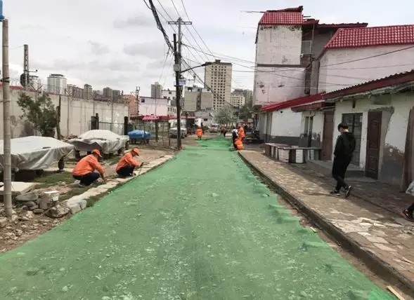 鐵路沿線改造后路面鋪設(shè)了毛氈