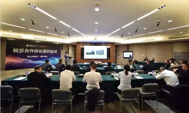 城關(guān)物業(yè)董事長楊民召(右)與雅生活集團(tuán)總裁劉德明(左)簽署股權(quán)合作協(xié)議