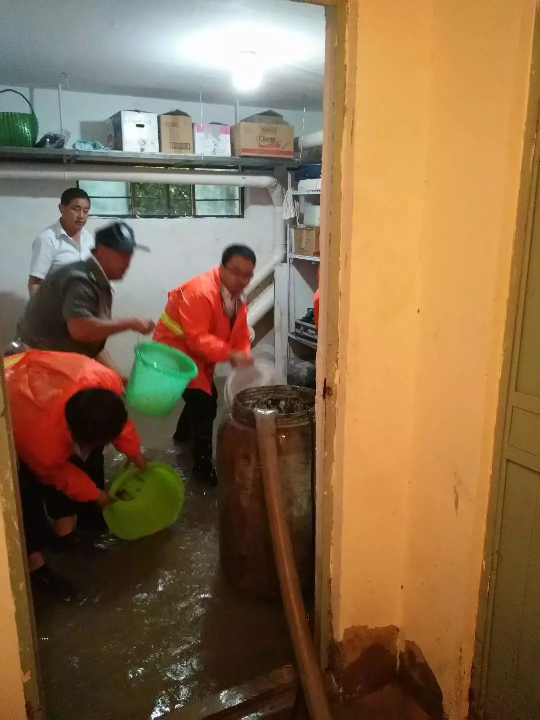 城關(guān)物業(yè)御景華庭項(xiàng)目部全體員工緊急出動(dòng),分頭通下水、疏雨排、搶物資等一系列工作,并帶動(dòng)業(yè)主開(kāi)展自發(fā)性的參與搶險(xiǎn)工作。經(jīng)過(guò)16個(gè)小時(shí)的艱難搶救,終于排除了險(xiǎn)情。