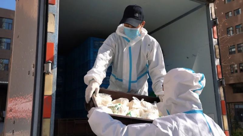 宋師傅是車隊司機(jī)之一,他開的是一輛中型貨車,一車能裝兩萬個饅頭,每天從早跑到晚,從東跑到西。“特殊時期,大家都辛苦,也不是我一個人這么拼!”宋師傅黑瘦精干,說話間一車饅頭裝齊又要出發(fā)了。11月10日下午3點(diǎn)左右,宋師傅運(yùn)送饅頭的車停在安瀾祥園物業(yè)門口,“全副武裝”的物業(yè)工作人員早早等候在那里。大家搬運(yùn)、分裝、分頭上門派送。每戶10個饅頭,先按5個用塑料袋分裝,再用專門訂制的綠色環(huán)保手提袋裝起來送到業(yè)主手中。