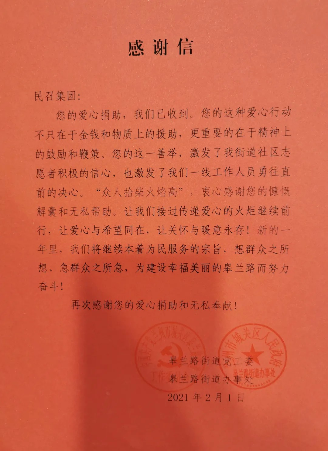 城關(guān)物業(yè)總裁楊佳林表示,社區(qū)志愿者是社區(qū)工作的重要組成部分,每一項(xiàng)工作他們都兢兢業(yè)業(yè)、為人民服務(wù),尤其是在過去的2020年,新冠疫情的原因使得志愿者的工作更危險,也更繁重。即便如此,他們也都奮戰(zhàn)在第一線,沒有一個人退縮,圓滿的完成了轄區(qū)的防疫工作。為了表達(dá)對他們辛勤工作的崇高敬意,楊佳林專程來到皋蘭路街道,為志愿者們送上新春的祝福并現(xiàn)場發(fā)放慰問金。